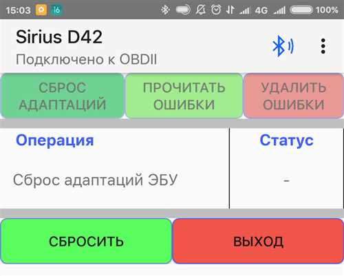 Устранение проблем: В некоторых случаях сброс адаптации может помочь устранить различные проблемы, связанные с работой автомобиля. Это может включать проблемы с двигателем, трансмиссией или другими компонентами автомобиля.