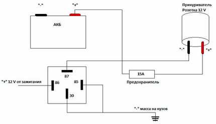 В большинстве автомобилей электрическая сеть, к которой подключен прикуриватель, работает через реле и предохранители, которые управляются зажиганием. При выключенном зажигании реле отключается и электрическая схема автомобиля отключается от аккумулятора, что приводит к неработоспособности прикуривателя.